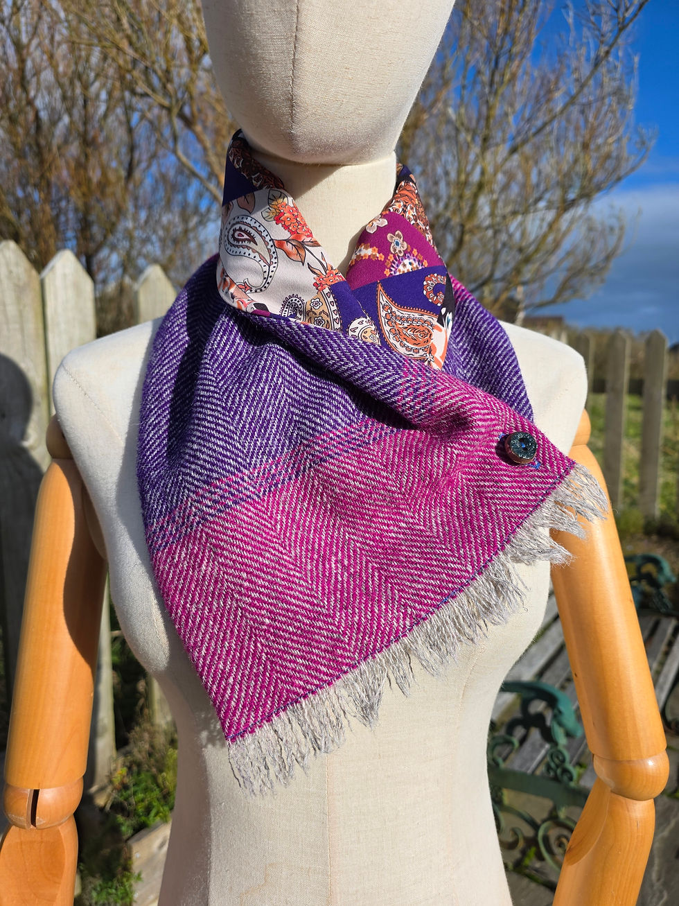 Handwoven from pure wool and fastened with a handmade button that I either make myself or buy from other independent artists. Some are lined with cotton, the luxury super soft ones are unlined to show off the sumptuous tweed. Warm and cosy, stylish and practical!